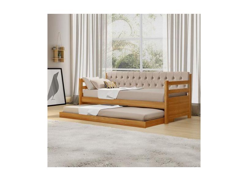 Bicama Solteiro Verona Imbuia Estofado Capitonê Veludo Bege com Cama A
