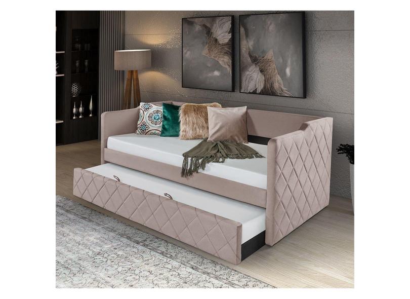 Bicama Vintage Rústica de Madeira com Revestimento Veludo Pavia Bege Dubai - Atraente Móveis