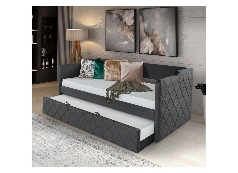 Bicama Vintage Rústica Madeira com Revestimento Veludo Pavia Cinza Dubai Atraente Móveis
