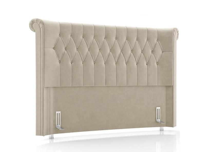 Cabeceira Cama Box Casal 140cm Estofada Meora P05 Veludo Bege - Lyam Decor