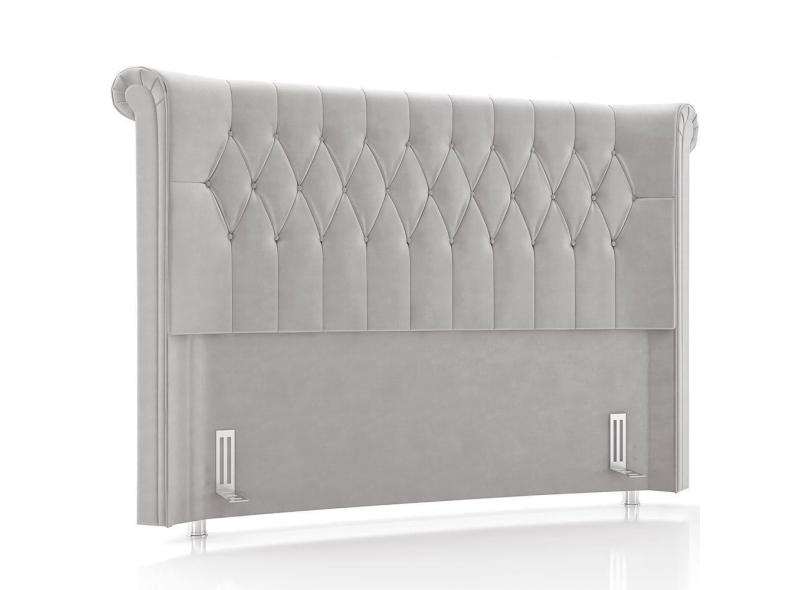 Cabeceira Cama Box Casal 140cm Estofada Meora P05 Veludo Cinza - Lyam Decor
