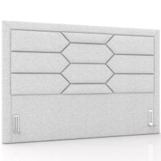 Cabeceira Cama Box Casal 140cm Estofada Nora P05 Linho Cinza Claro
