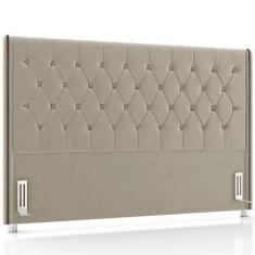 Cabeceira Cama Box Queen 160cm Estofada Frizza P05 Veludo Bege - Lyam Decor