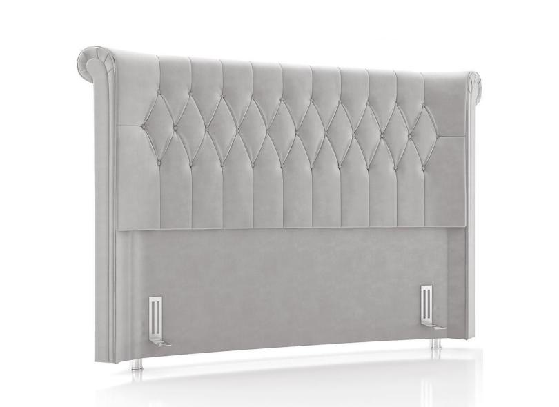 Cabeceira Cama Box Queen 160cm Estofada Meora P05 Veludo Cinza - Lyam Decor