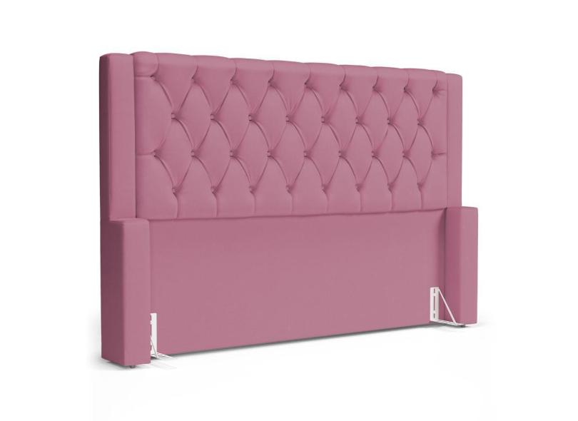 Cabeceira Cama Box Queen Size Atena 180cm Capitonê com Frame Suede Rosa - Desk Design