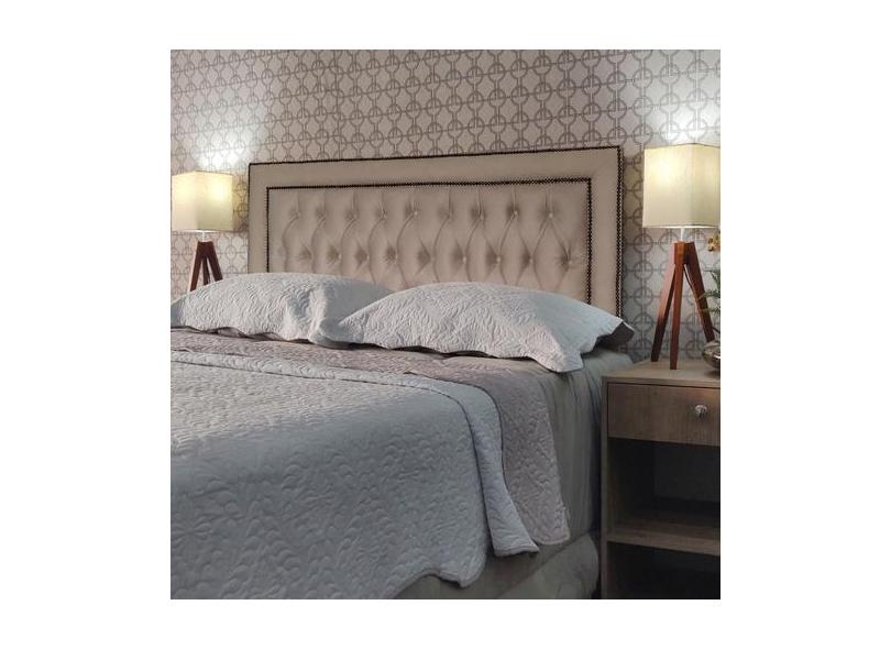 Cabeceira Casal 140 Cama Box Sophia Capitonê Diamond 2 Bege Suede Com