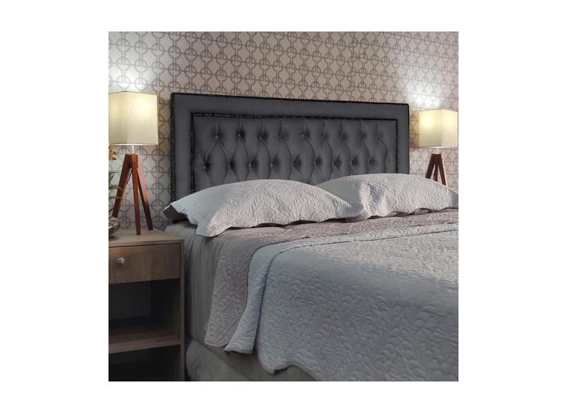 Cabeceira Casal 140 Cama Box Sophia Capitonê Diamond 2 Cinza Suede Pai