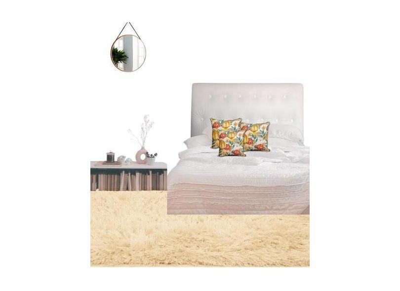 Cabeceira Estofada Butonê Material Sintético Branco -Cama Box Solteiro