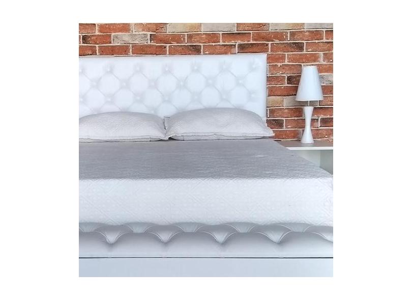 Cabeceira Queen E Recamier Cama Box Capitonê Luna Kit Baú Branco Rbl