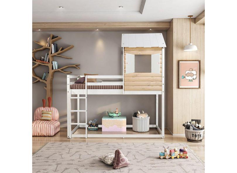 Cama Alta Infantil Club House Wood Casatema Branco/Marroml