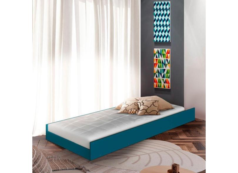 Cama Auxiliar Solteiro Com Rodinhas Azul Secreto Felipe Completa Móveis