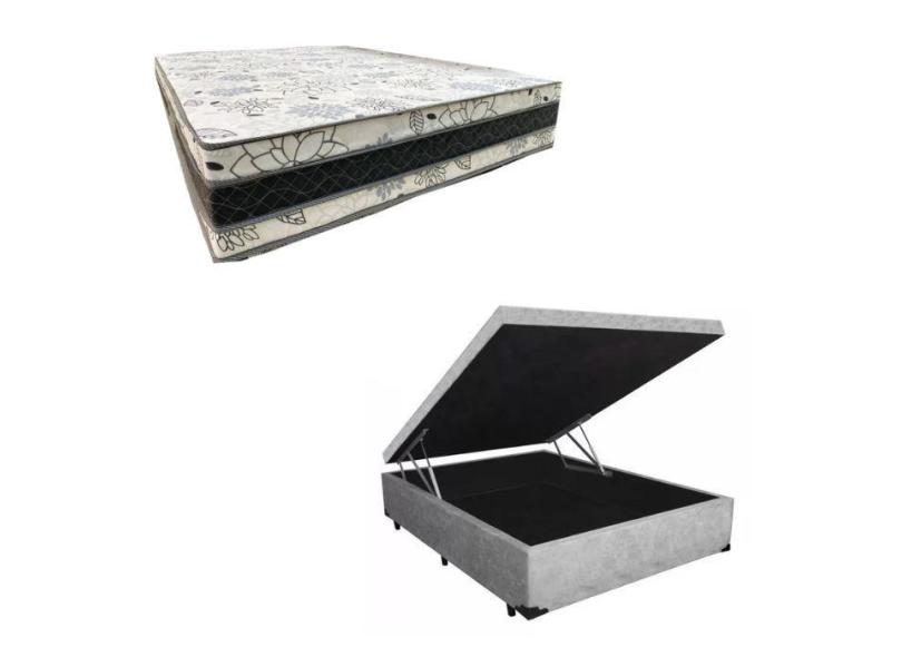 Cama Base Box Baú Casal Super Confort Suede Cinza + Colchão Casal Super Confort D33 28x138x188