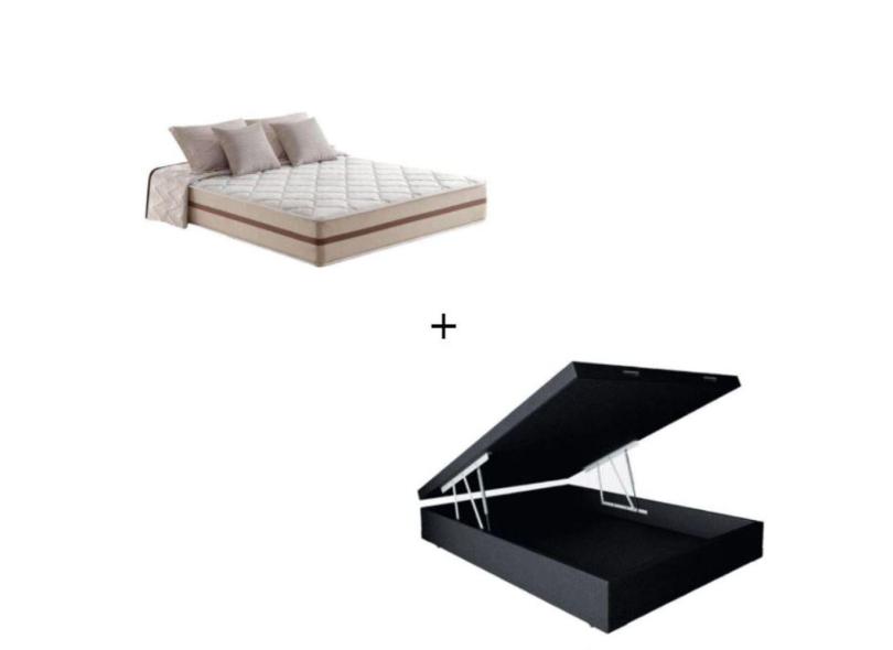 Cama Baú Box Casal Tecido Sintético Preto com Colchão Pillow Angel - Bello Box - Molas Ensacadas 63x138x188