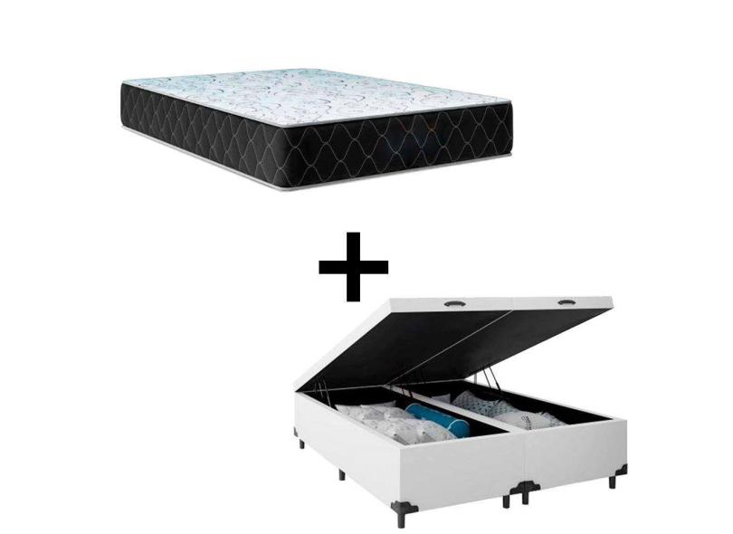Cama Baú Casal 138 Bipartido Tecido Sintético Branco Com Colchão Marrocos - Poliéster - Espuma D33 30cm