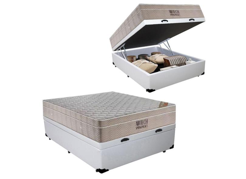 Cama Baú Casal Sintético + Colchão Casal Ortobom Airtech Molas Ensacadas 65x138x188 Branco