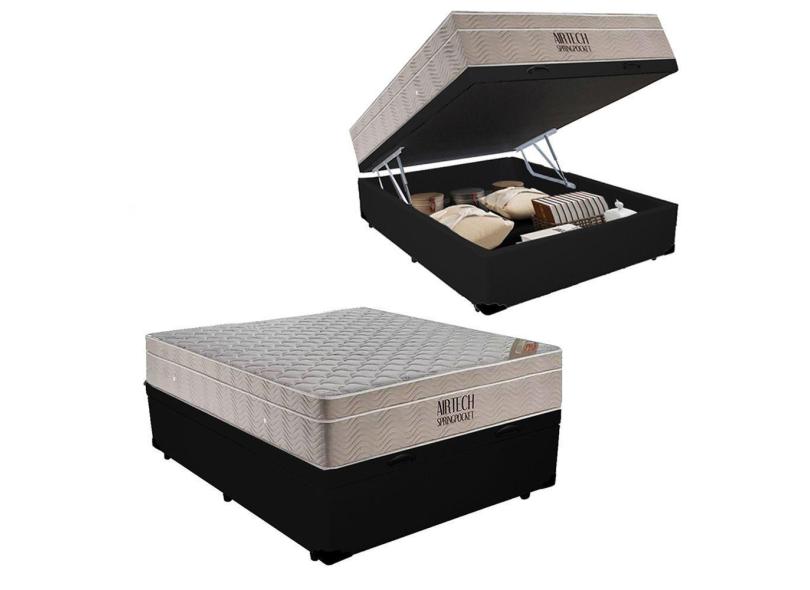 Cama Baú Casal Sintético + Colchão Casal Ortobom Airtech Molas Ensacadas 65x138x188 Preto