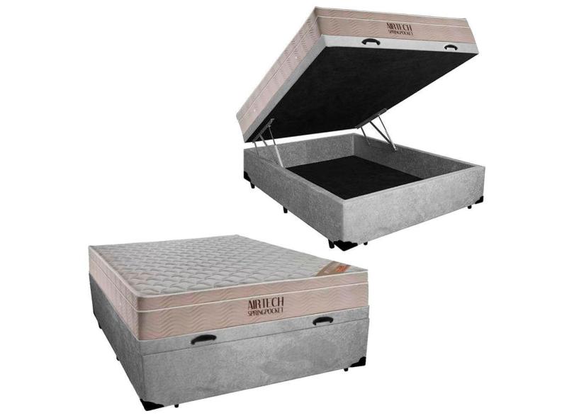 Cama Baú Casal Suede + Colchão Casal Ortobom Airtech Molas Ensacadas 65x138x188