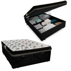 Cama Baú Casal Suede + Colchão Casal Ortobom Iso Dupla Face 60X138X188