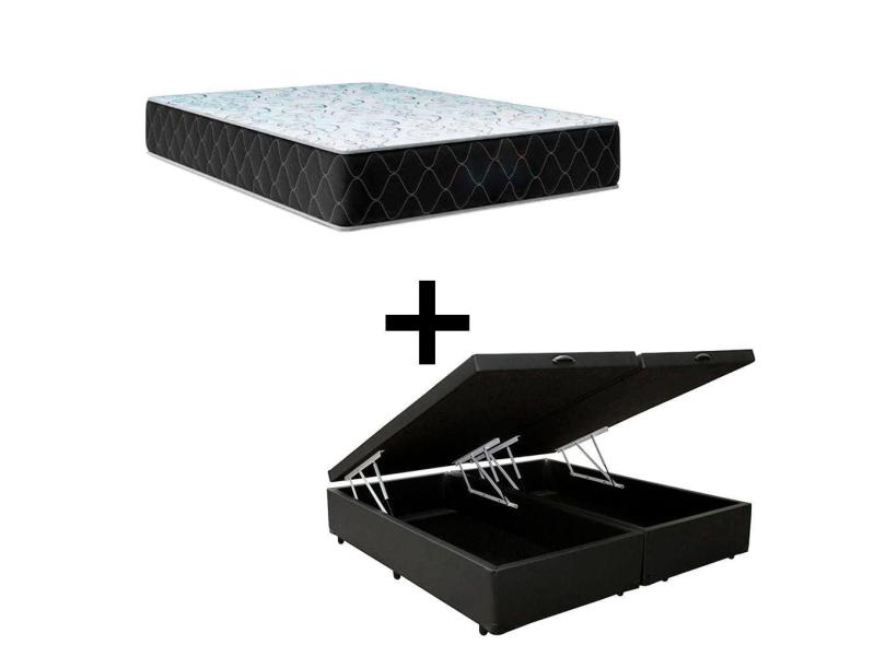 Cama Baú King 193 Tecido Sintético Preto Com Colchão Marrocos - Poliéster - Espuma D33 30cm