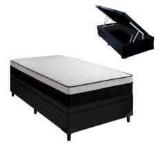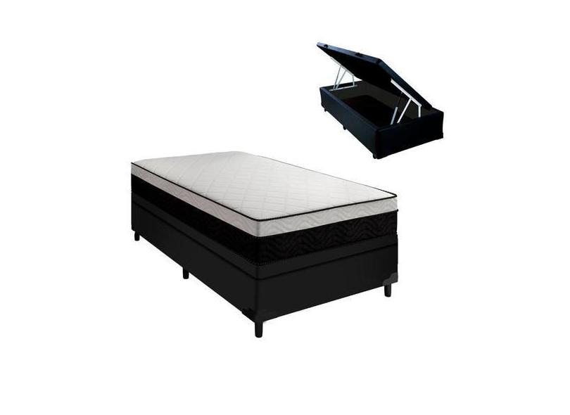Cama Baú Preta Solteiro Arezzo Black White Molas Ensacadas - Portobel