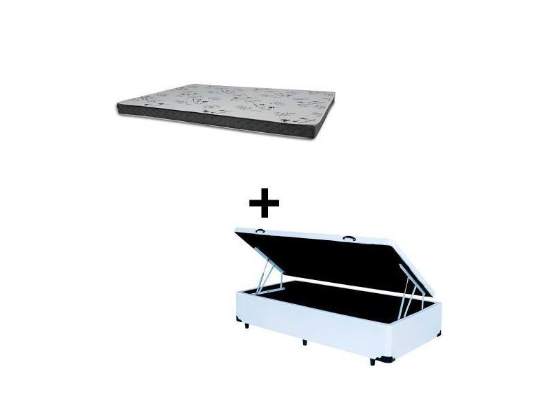 Cama Baú Solteiro 88 Tecido Sintético Branco Com Colchão Miller Bello