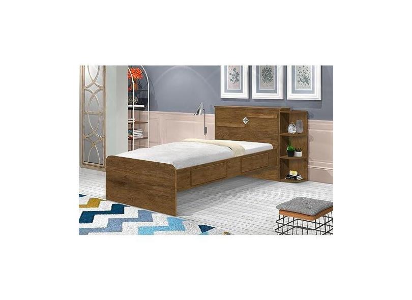 Cama Baú Solteiro com 2 Gavetas Hortencia Jequitibá/off White