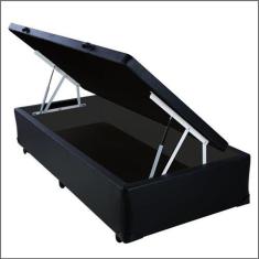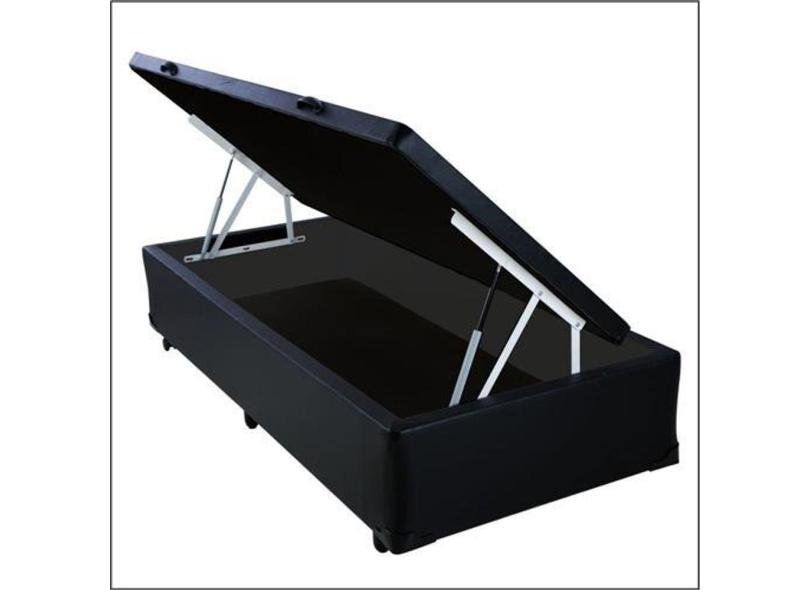 Cama Baú Solteiro Preta Corino Blindada