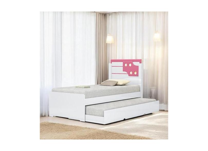 Cama Bibox Solteiro Com Aplique Colônia Branca E Rosa - Mobiliar Home