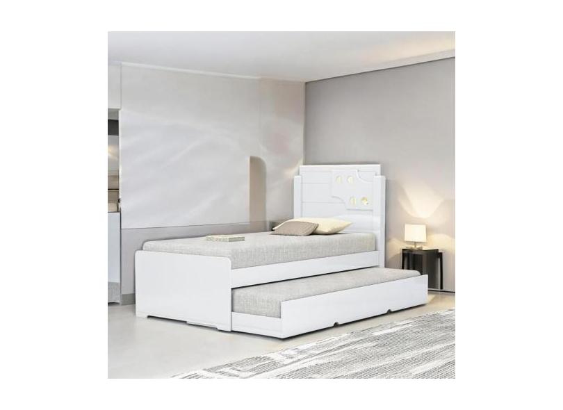Cama Bibox Solteiro com Aplique Luiza Branca - Vitamov