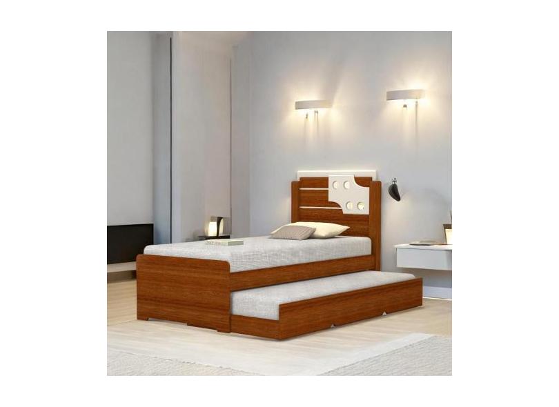 Cama Bibox Solteiro com Aplique Luiza Cinamomo e Off White - VitaMov