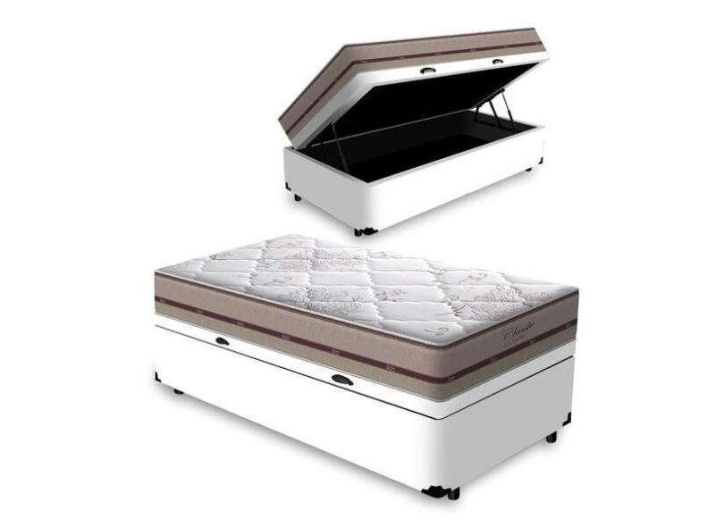 Cama Box Ba Solteiro King Branco + Colch o De Molas Ensacada