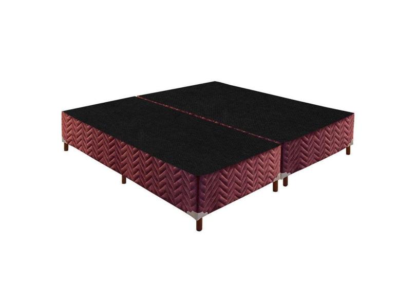 Cama Box Base Universal Queen Sommier Rústico Bordado Wine (158X198x30) - Paropas