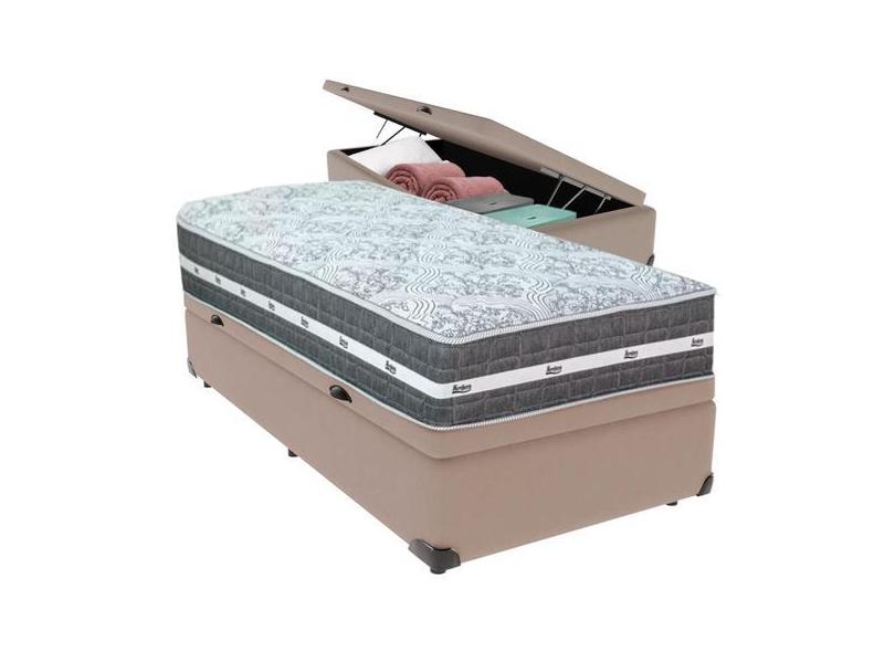 Cama Box Baú Bege e Colchão Black Graphite Molas Ensacadas Solteiro 88