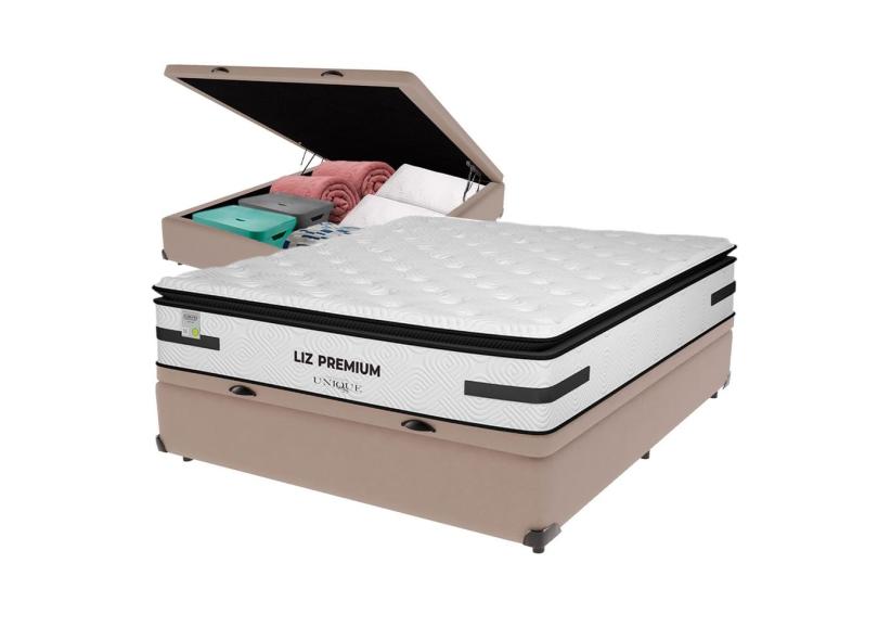 Cama Box Baú Bege e Colchão Casal Liz Premium Molas Ensacadas Unique