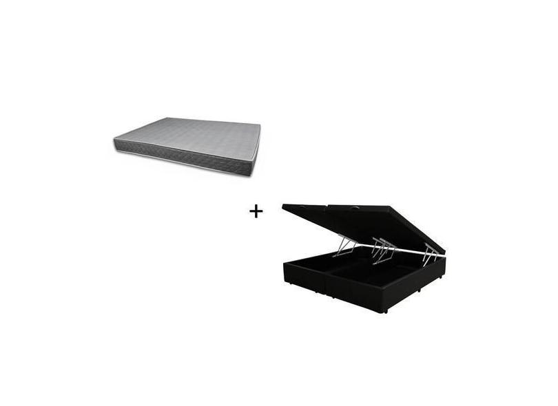 Cama Box Baú Bipartido Casal Sintético Preto 138 Com Colchão Boston Be
