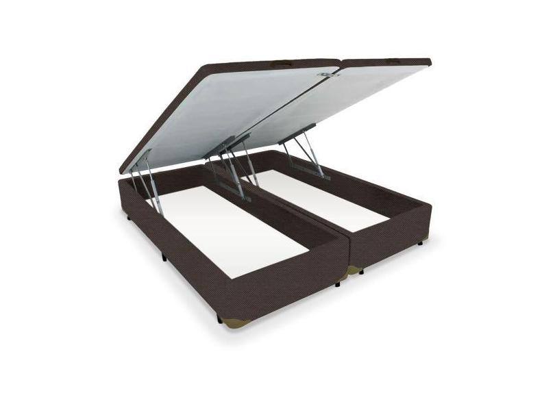 Cama Box Baú Bipartido Frontal Queen Size Linho Tabaco / Marrom Cosmop
