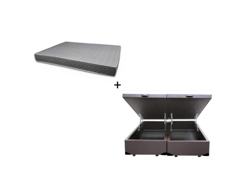 Cama Box Baú Bipartido King Sintético Marrom 193 com Colchão Boston Bello Box - 100% Espuma - D33 Cinza