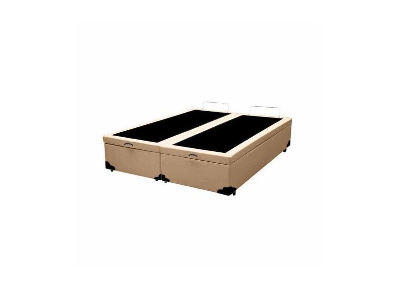 Cama Box Baú Blindado Casal Bipartido Acolchoes Sintético Bege 41X138x