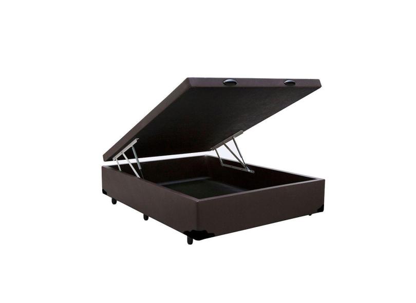 Cama Box Baú Blindado Casal HomeQueen Corino Marrom 41x138x188