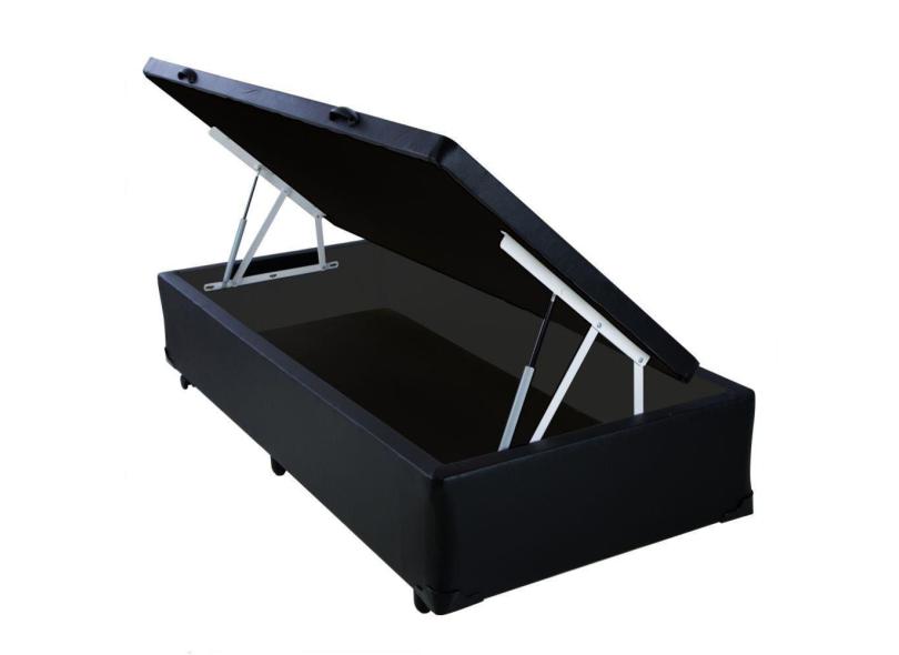 Cama Box Baú Blindado Solteiro HomeQueen Corino Preto 49x88x188