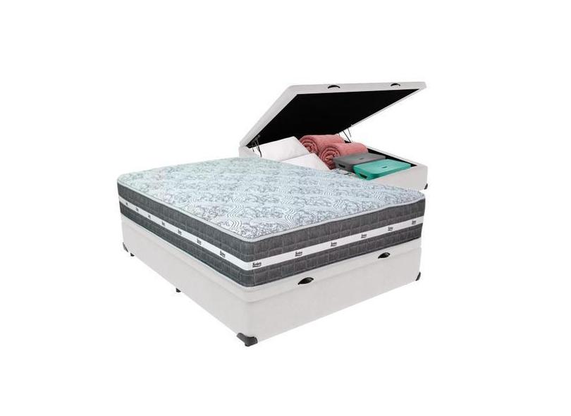 Cama Box Baú Branco e Colchão Black Graphite Molas Ensacadas Casal 138