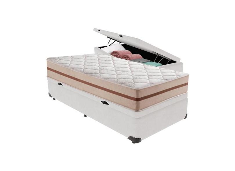 Cama Box Baú Branco e Colchão Classic 22 cm Molas ensacadas Solteiro A