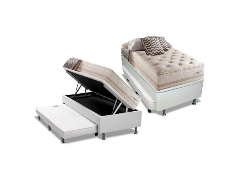 O menor preço encontrado no Brasil para Cama Box Baú c/Auxiliar Solteiro: Colchão Molas Herval Maxspring Scotland + Base CRC Courano Branco(88x188) atualmente é R$ 2.383,01.