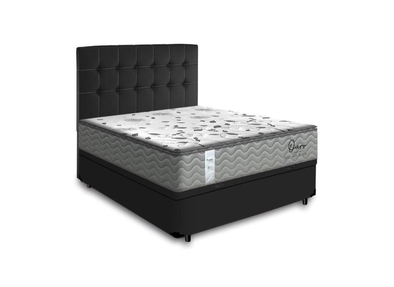 Cama Box Baú + Cabeceira Cassis Preta e Colchão de Molas Casal - Probel - Guarda-Costas Ouro 138cm