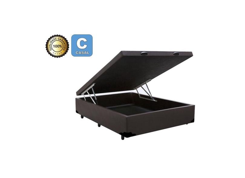 Cama Box Baú Casal 138 - Bello Box - Tecido Sintético Marrom 30CM profundidade - altura total 48 cm