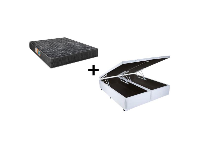 Cama Box Baú Casal 138 Bipartido Tecido Sintético Branco com Colchão Florenza Espuma D28 Preto