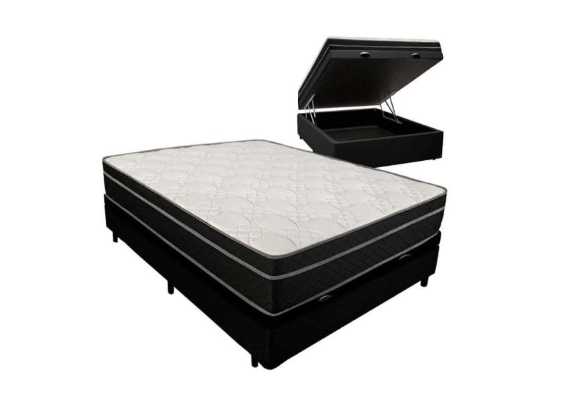 Cama Box Baú Casal 138 Tecido Sintético Preto com Colchão Paris de Molas Ensacadas Preto 26x138x188
