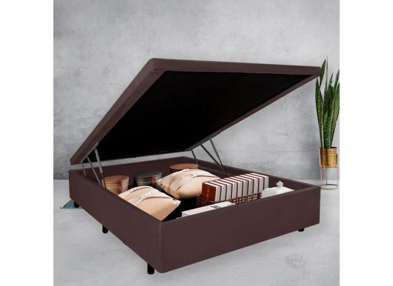 Cama Box Baú Casal 138x188x40cm Suede Marrom com Pistão a Gás