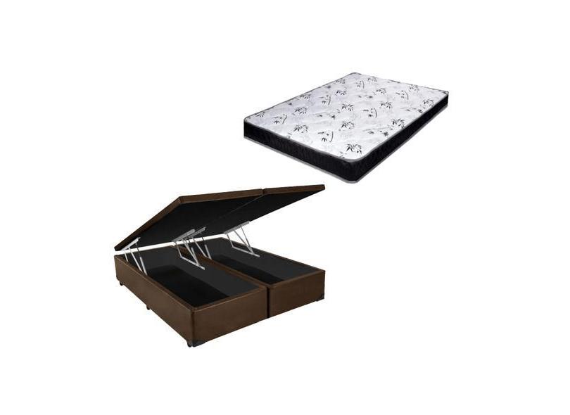 Cama Box Baú Casal Bi-Partido Green Marrom + Colchão Espuma D33 138X18