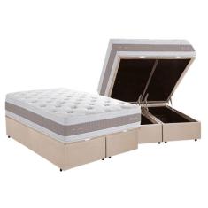 O menor preço encontrado no Brasil para Cama Box Baú Casal Bipartida + Colchão Herval Inverno Verão C1666 Mola atualmente é R$ 5.235,81.